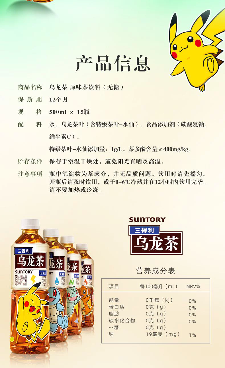 三得利乌龙茶饮料无糖低糖乌龙茶饮料